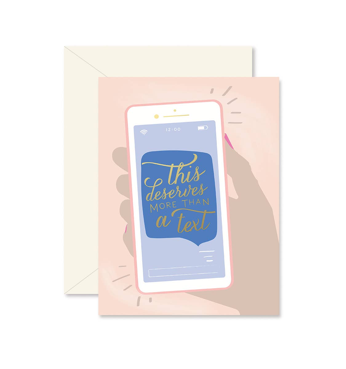 This Deserves more than a text. With Gold Foil. Full - color 4.25" x 5.5" folded greeting card. Blank interior. Ivory envelope included.