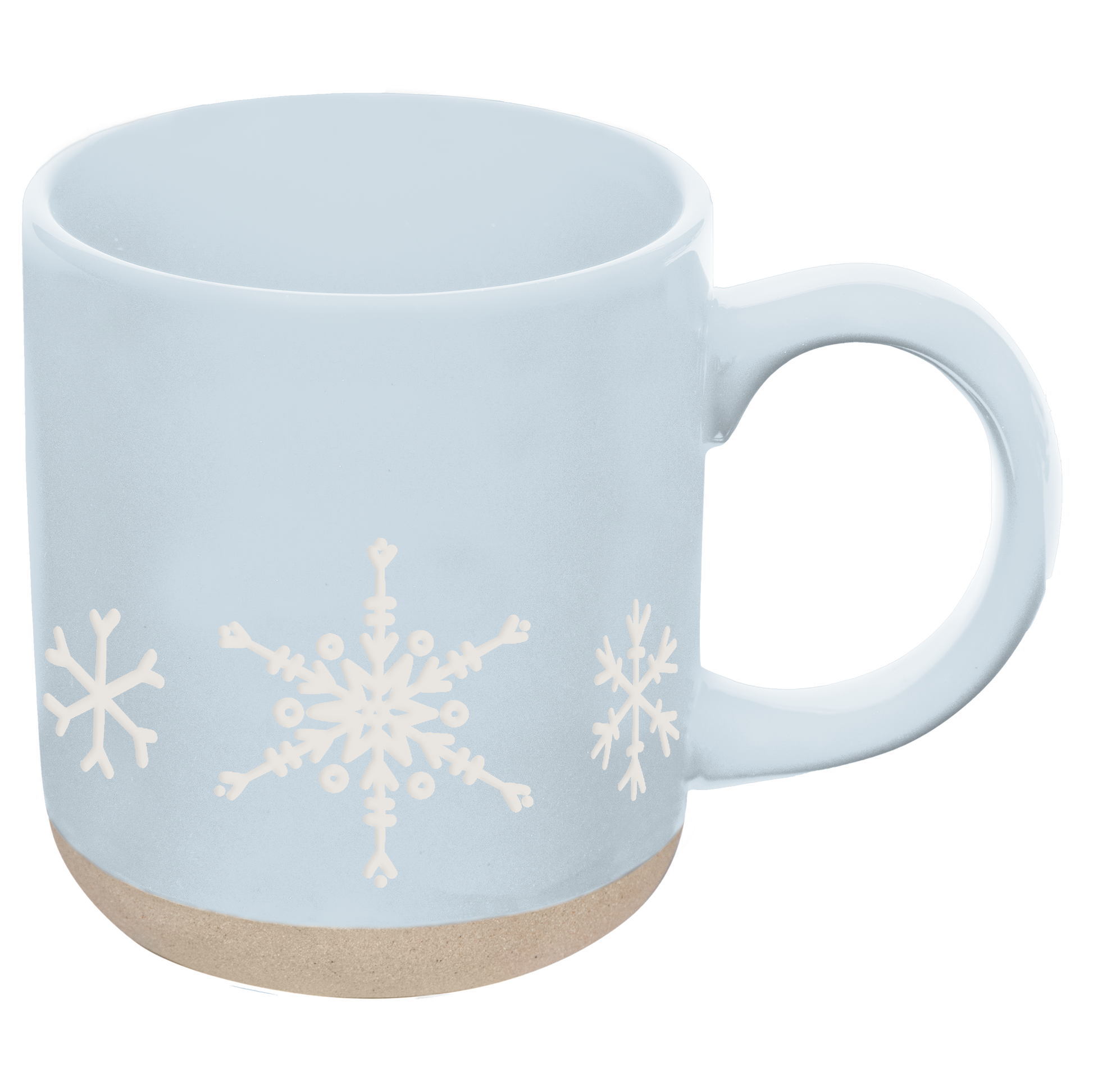 DETAILS: • 14oz Stoneware Style Mug • Size: 3.31 x 3.93" (5.19" w/handle) • Original Design: Snowflakes • Design on Both Sides of Mug • Light Blue with Natural Bottom Details • Each piece is hand-crafted, making the character of each mug perfectly unique. There may be slight variations. • Designed in the USA, Imported • Microwave and Dishwasher Safe